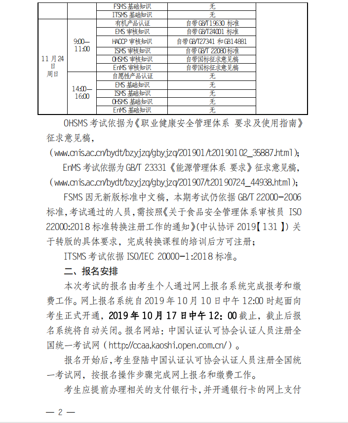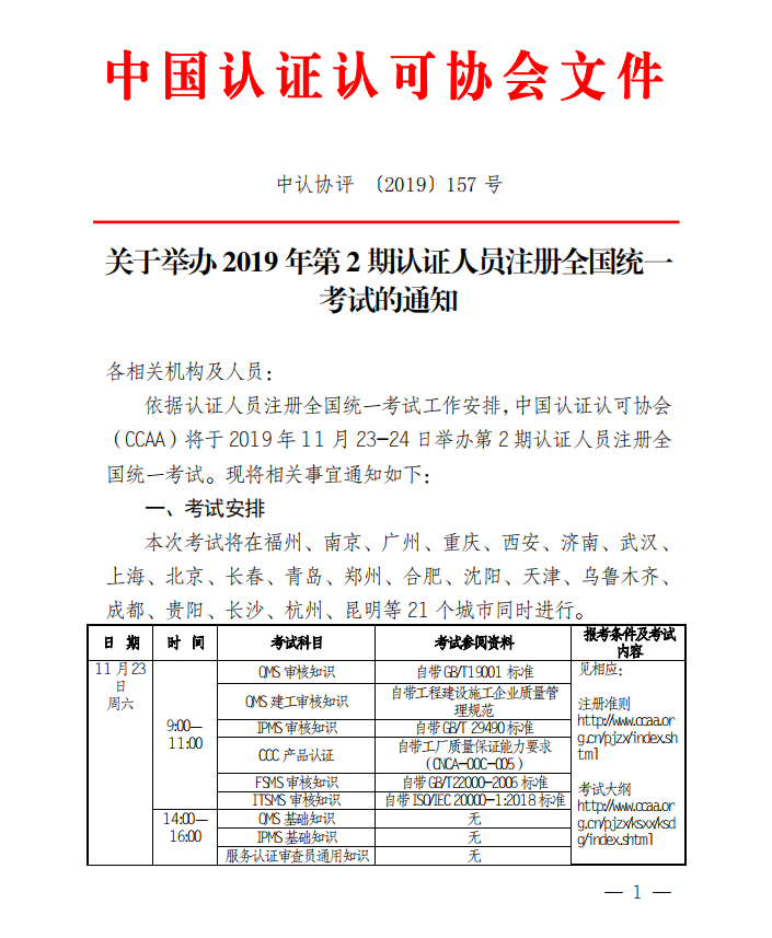 關于審核員考試的通知,審核員考試報名系統(tǒng)開放時間為2019年10月10日中午12:00之后開通,請相關考生注意考試報名時間?。?!審核員免費考前培訓將另行通知!??!